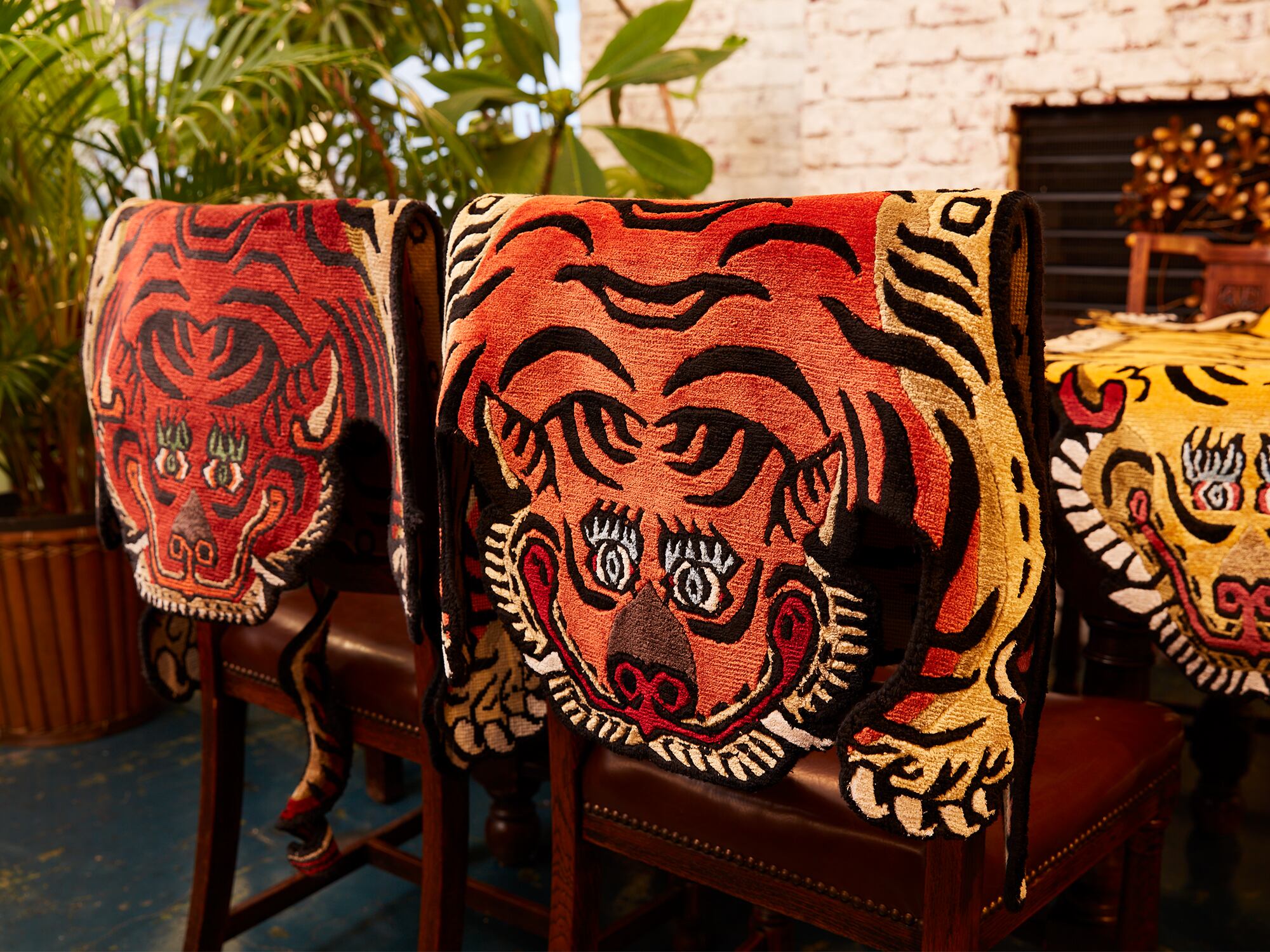 玄関やリビングはもちろん、ソファにかけたりアートとして壁に飾ってもその特徴的で高いデザイン性のチベタンタイガーラグは日々の生活を豊かにしてくれる事でしょう。